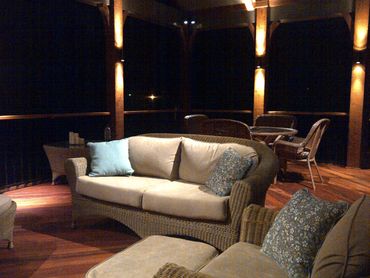 This project is a transformation of a cramped and tired raised deck into a relaxing outdoor escape for enjoying quiet mornings or unwinding at the end of the work day. This fully screened room offers a near seamless transition from the homes interior and features custom lighting and the Fortress railing system.